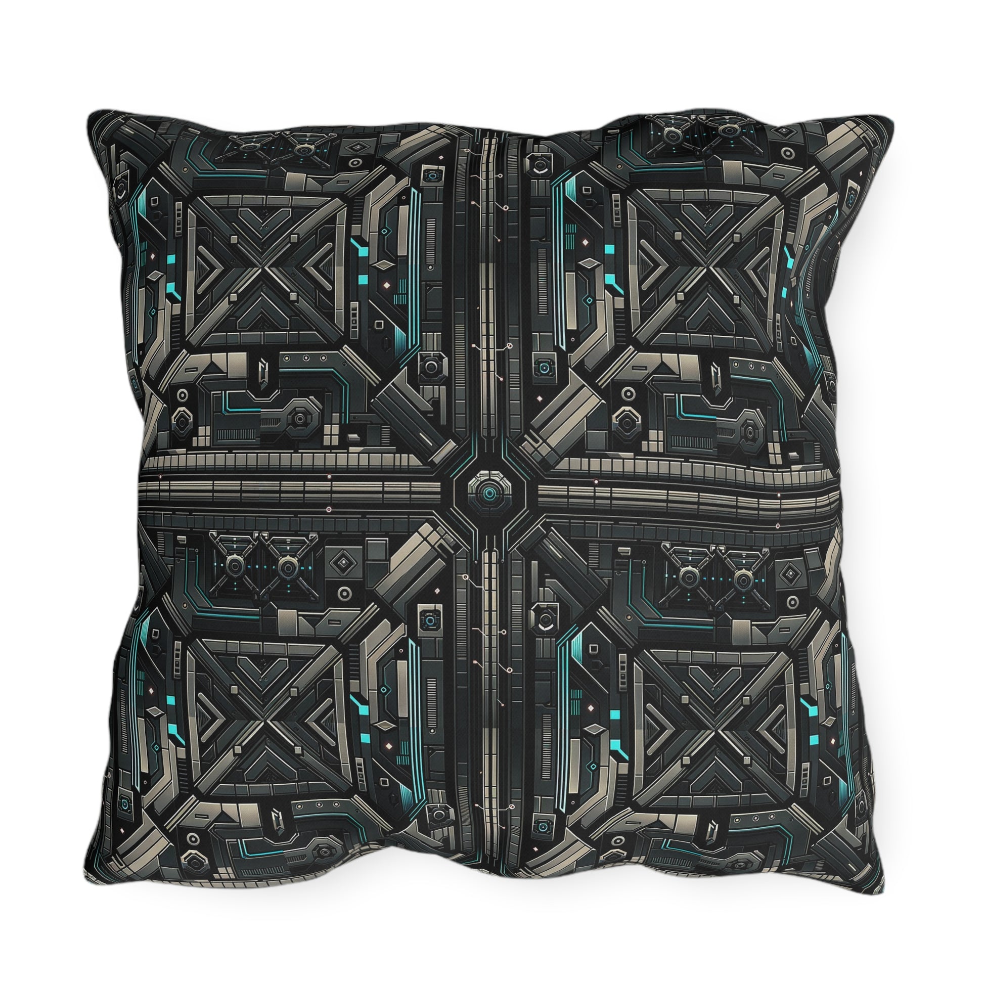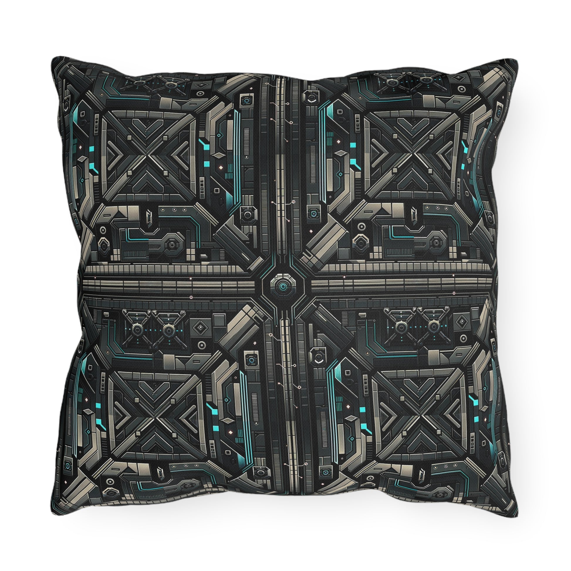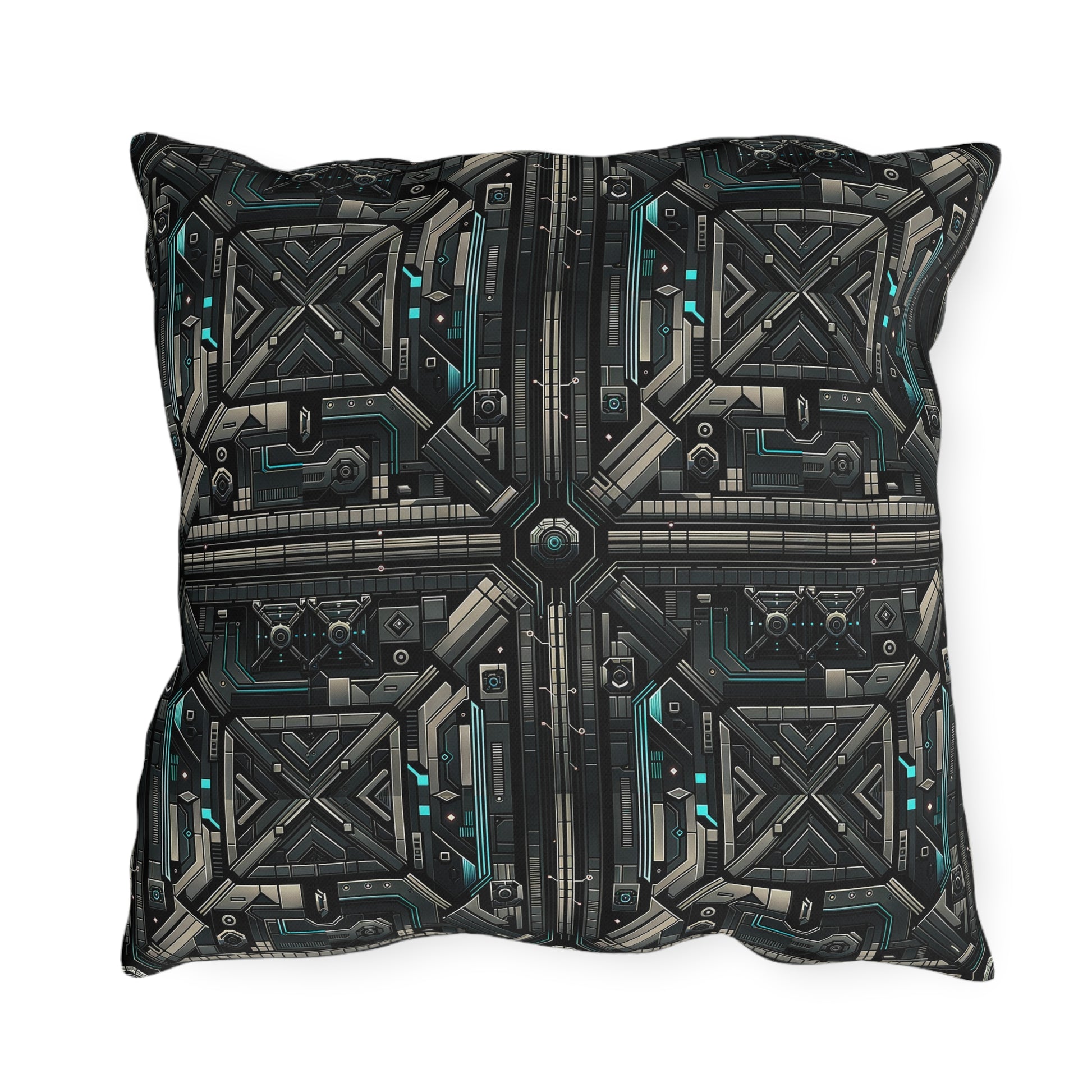 Tech Noir Futuristic Tech Aesthetic with a Dark Twist Outdoor Pillow - 8404 Design-59