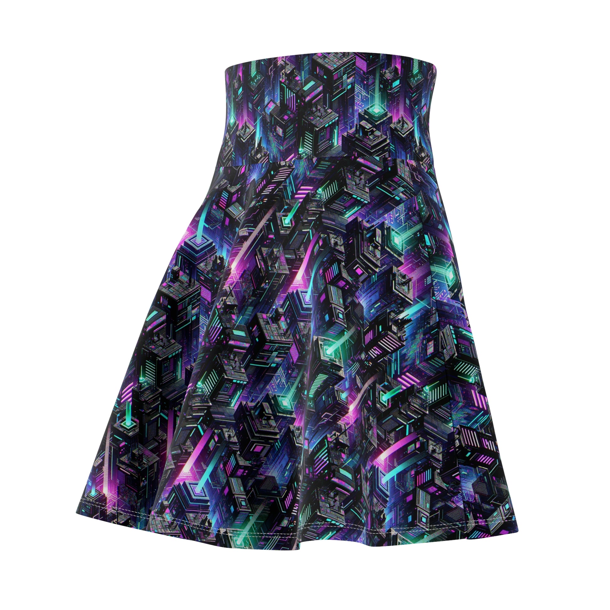 Tech Noir Graphics Futuristic Tech Aesthetics Women's Skater Skirt - 8404 Design-55