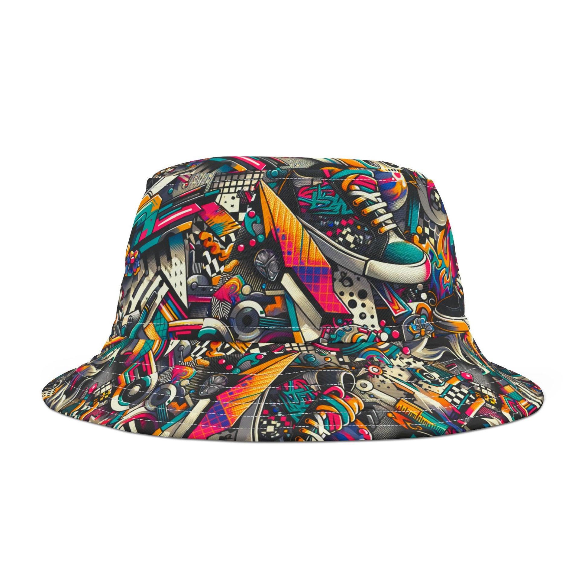 Urban Graffiti Fusion Eclectic Street Art Meets Modern Tech Culture Bucket Hat - 8404 Design-55