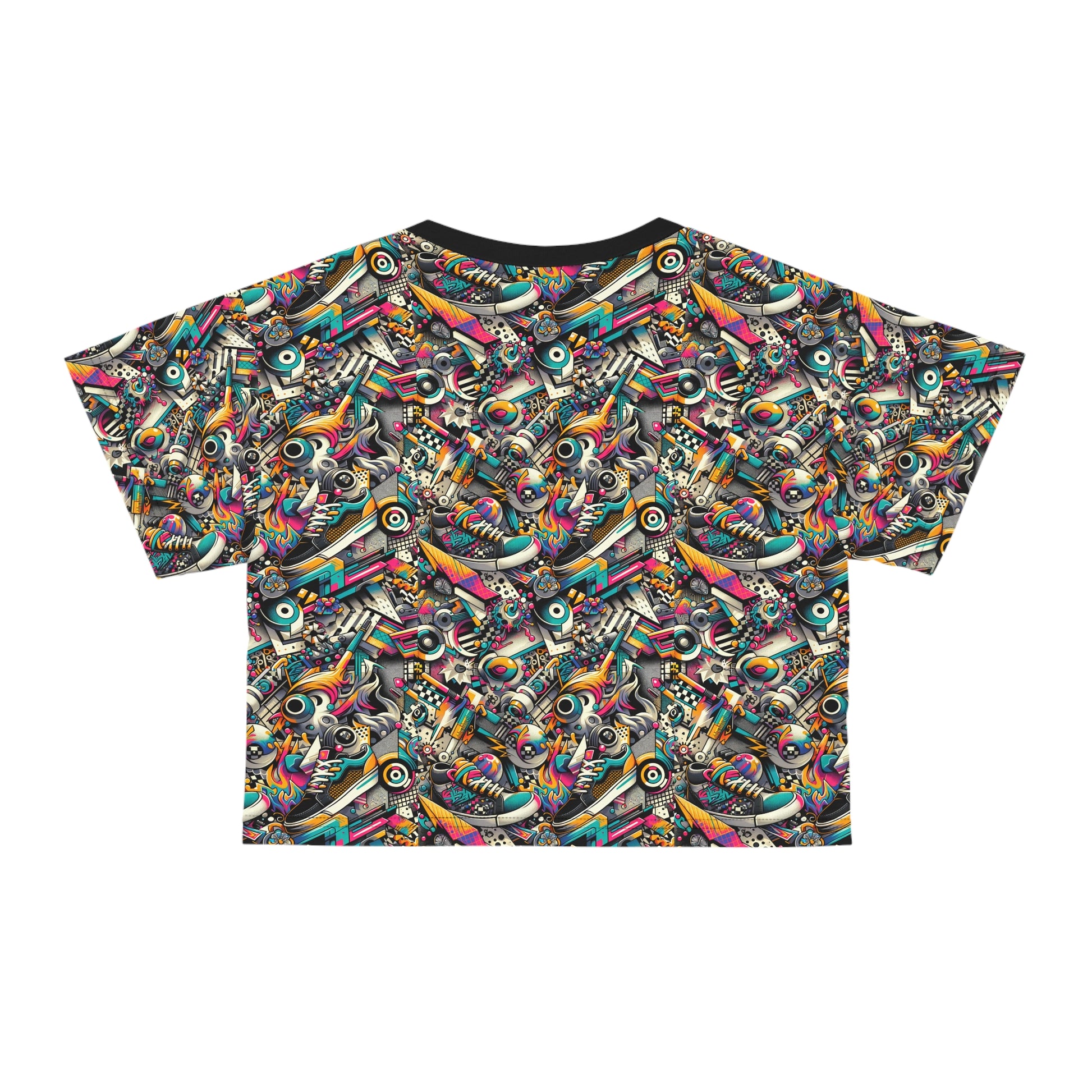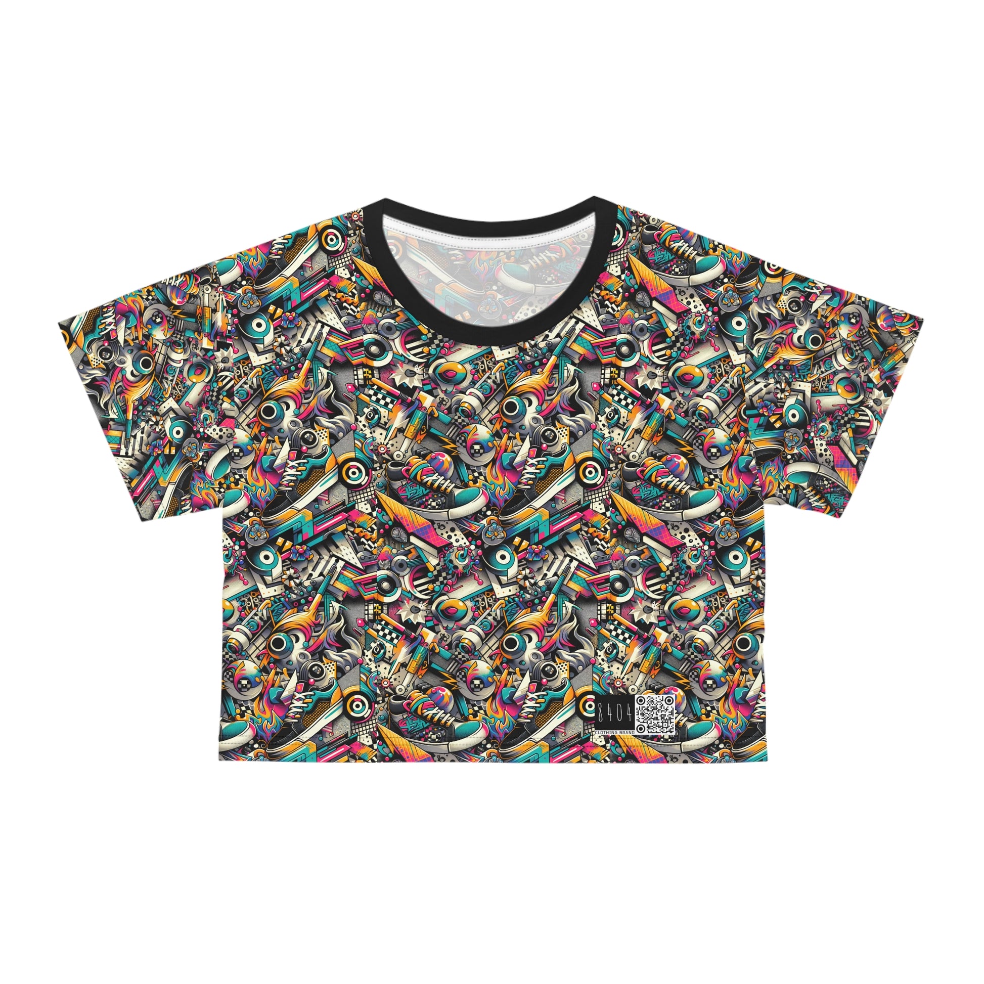 Urban Graffiti Fusion Eclectic Street Art Meets Modern Tech Culture Crop Tee - 8404 Design-55