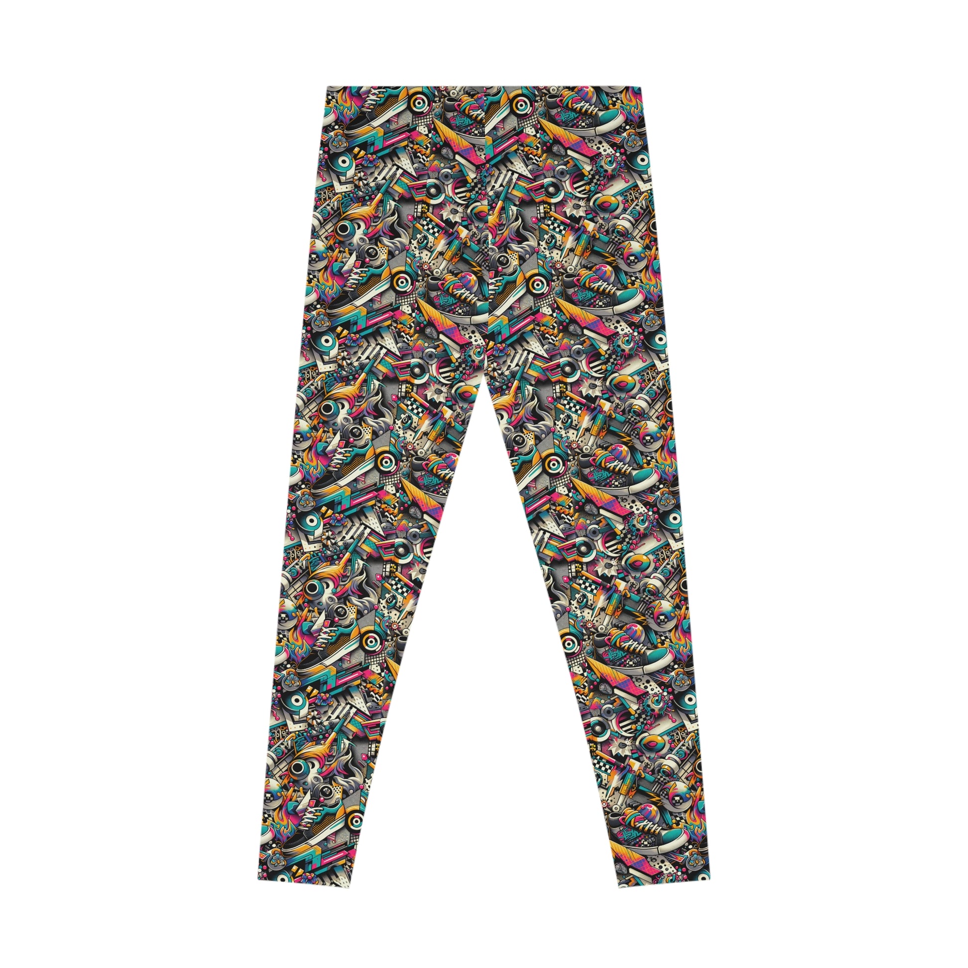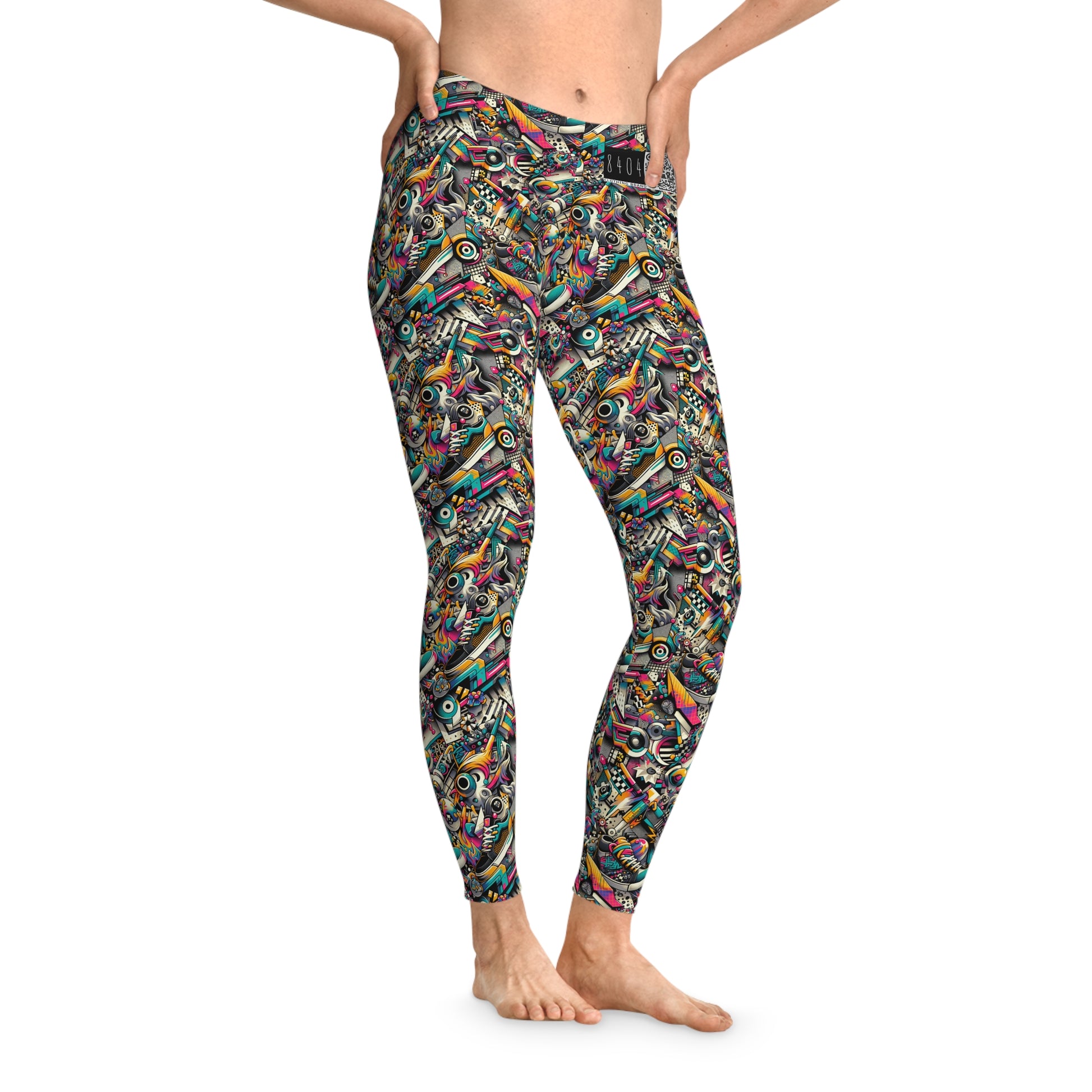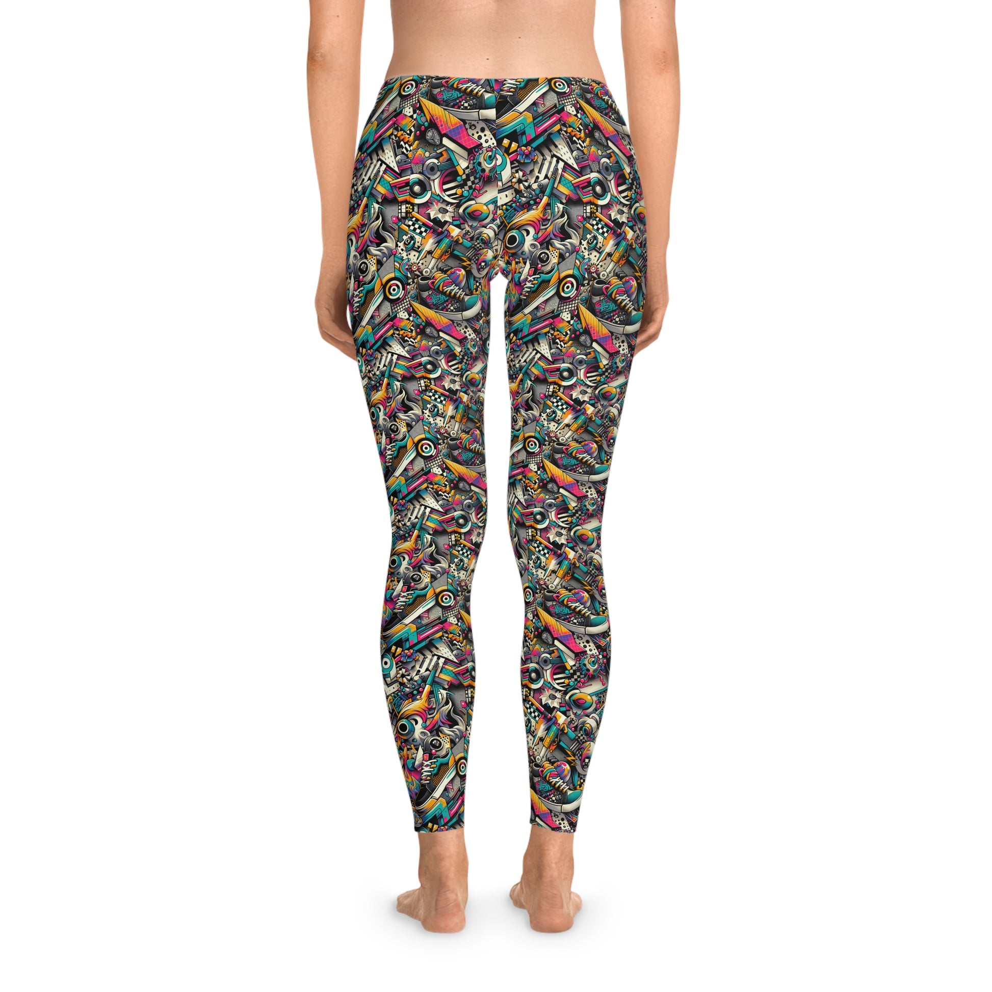 Urban Graffiti Fusion Eclectic Street Art Meets Modern Tech Culture Stretch Leggings - 8404 Design-55