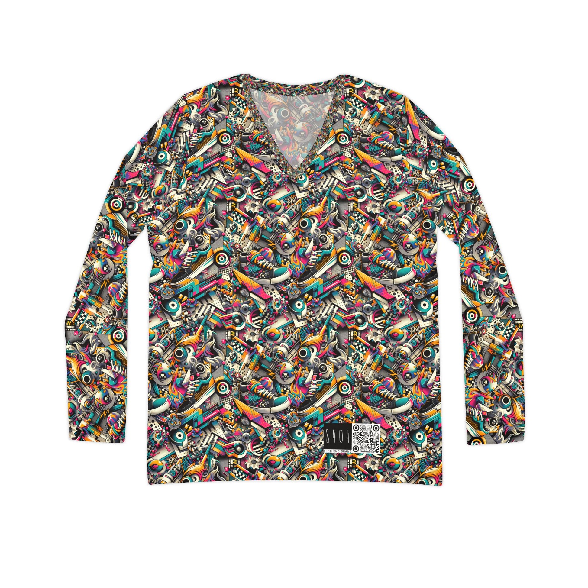 Urban Graffiti Fusion Eclectic Street Art Meets Modern Tech Culture Women's Long Sleeve V-Neck Shirt - 8404 Design-55